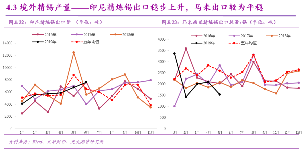 印尼精炼锡的供给已基本恢复正常,伦锡库存的升高也表明国外市场需求不及预期。精炼锡出口窗口关闭,将加大国内需求的压力。