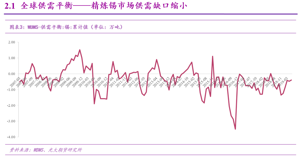 全球精炼锡市场供需缺口从去年底的1.2万吨缩小至5月的0.4万吨。库存持续累积,5月底全球库存较去年底增加6900吨。