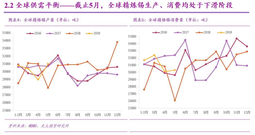 截止5月,全球累计生产精炼锡11.52万吨,同比减少3300吨,其中亚洲地区生产同比减少4400吨。